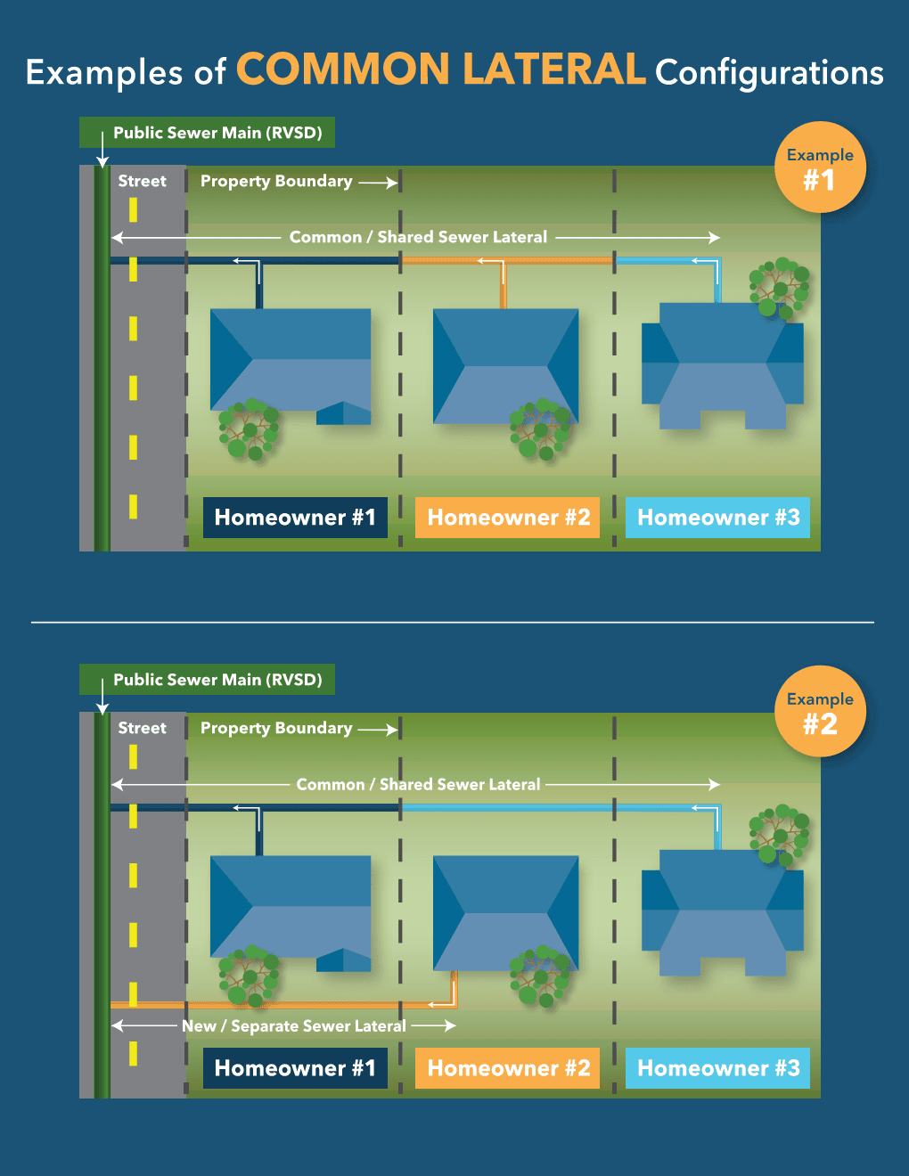 Ordinance 100 (Section 13) does not allow the construction of new common laterals. You can view our Ordinance here Version OptionsCommon LateralsHeadline. Existing common laterals are part of RVSD's legacy system.